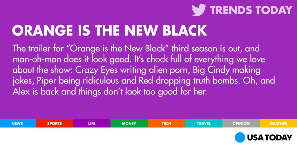 “@USATODAY: Twitter is stoked for the "Orange is the New Black" trailer: http://usat.ly/1Guj2FK #OITNB pic.twitter.com/35DeD5yriz” @_ceray_