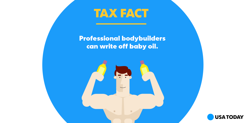 “@USATODAY: Are you a pro. bodybuilder? That oil you use to make your guns glisten may be a tax write-off. How about purchase of mirrors ?