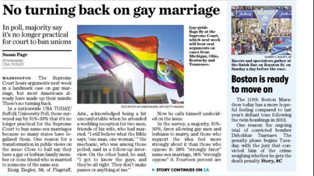 New @USATODAY poll: A majority of Americans say Supreme Court shouldn't ban marriage #equality http://usat.ly/1yIri2G pic.twitter.com/eN93heYb5N