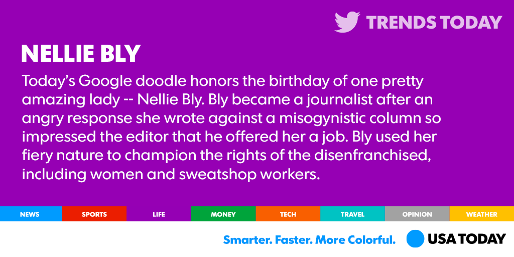 @USATODAY Don't forget she locked herself up in an asylum just so she could write the real story of what it was like to be a patient there.Thanks. Twitter will use this to make your timeline better. UndoUndo
