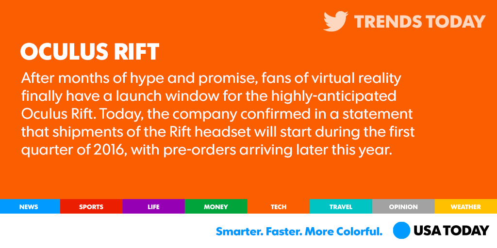 Techies are getting excited IRL for the arrival of Oculus Rift. http://usat.ly/1GPyKq9 pic.twitter.com/AuIRiUCp0h