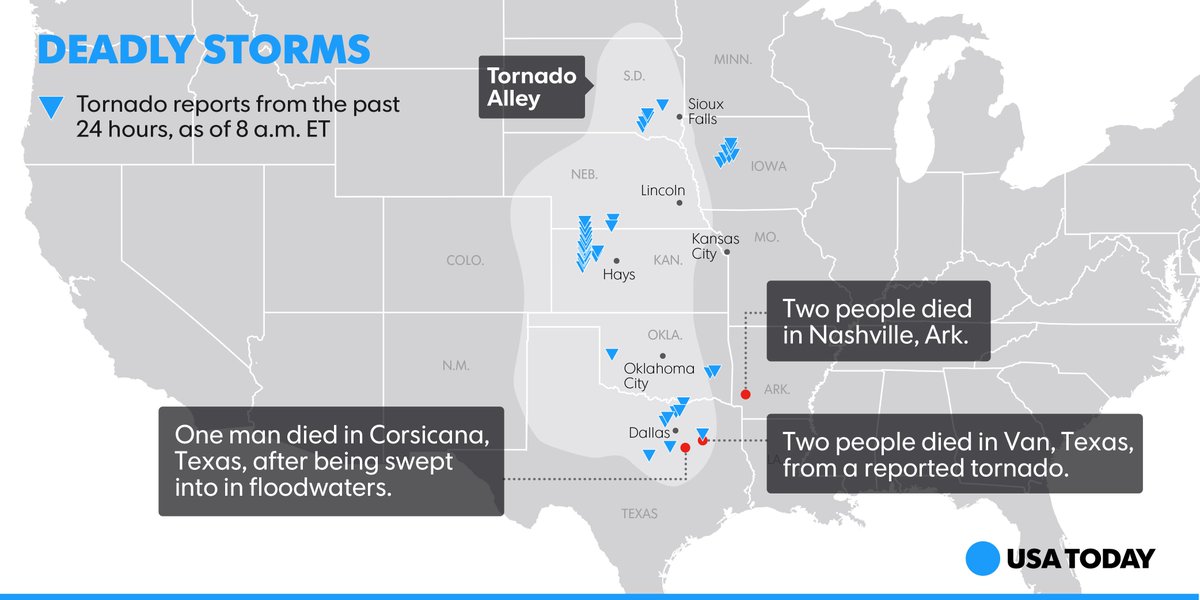 The death toll from Sunday's tornadoes and severe storms has risen to five. http://usat.ly/1G0cVbx pic.twitter.com/Tcps2S8HTB