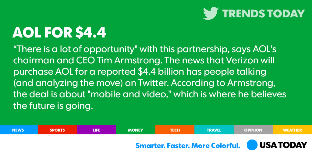 @USATODAY: Verizon’s $4.4 million AOL acquisition has people talking: http://usat.ly/1FbZ9BK pic.twitter.com/QgSsbRu5ae”#dubizsoc