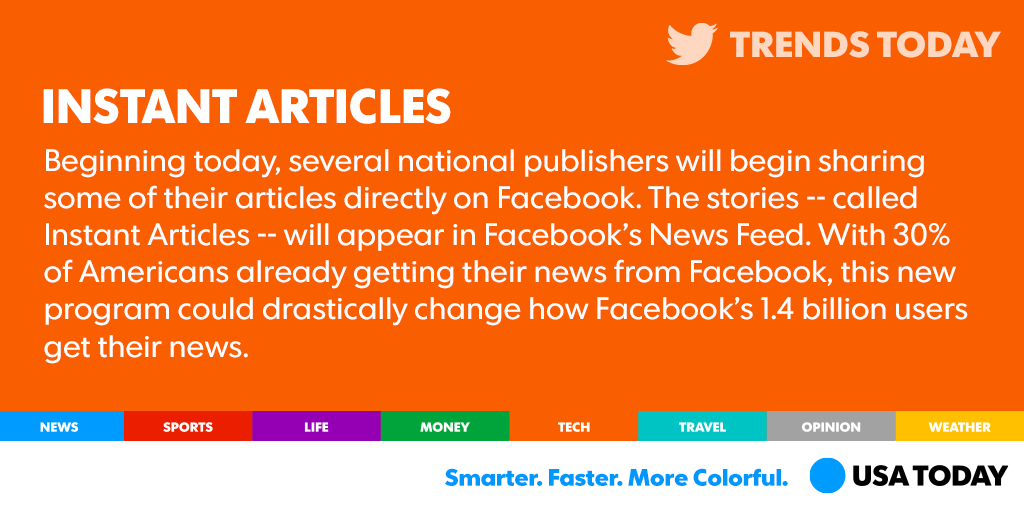Your News Feed just got newsier: Facebook announces Instant Articles http://usat.ly/1AXgeKq pic.twitter.com/9VQHXHqFCV