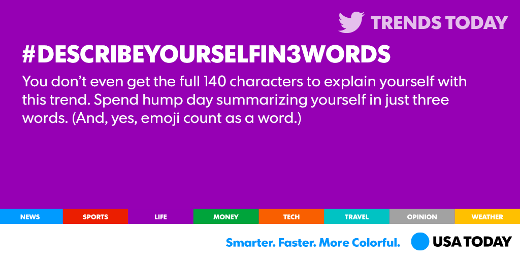 @USATODAY positive, passionate, and imaginative #DescribeYourselfIn3Words
