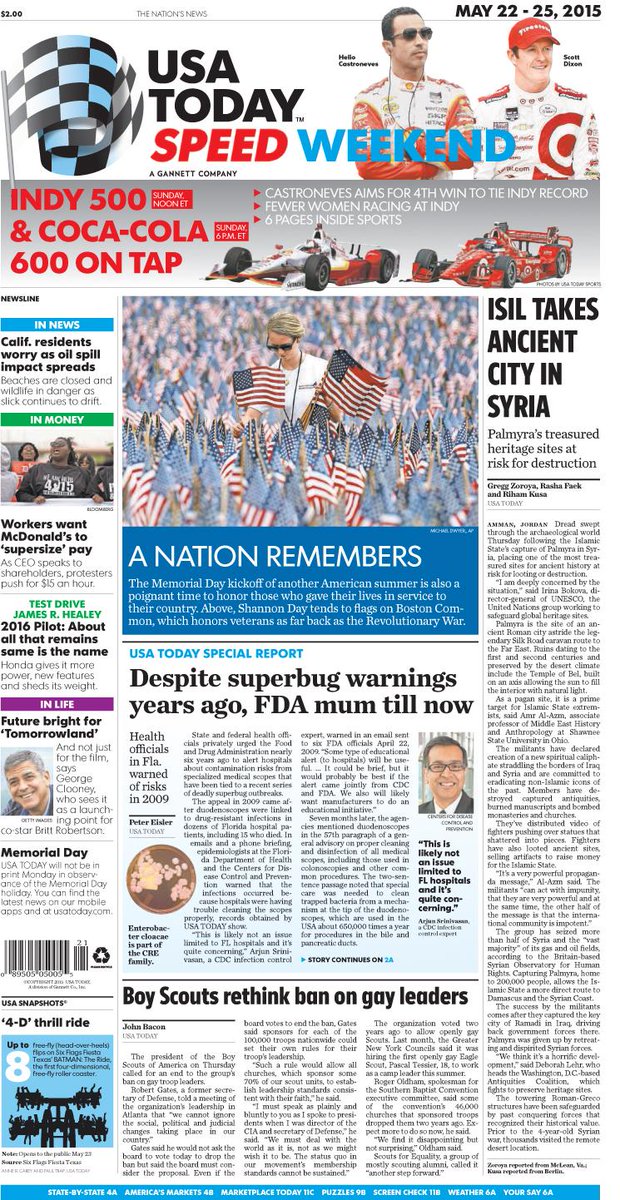 “@USATODAY: Today's #frontpage: Ancient sites at risk after #ISIL takes city. #FDA quiet on superbug risks til now. pic.twitter.com/eGZWeKFSRL”