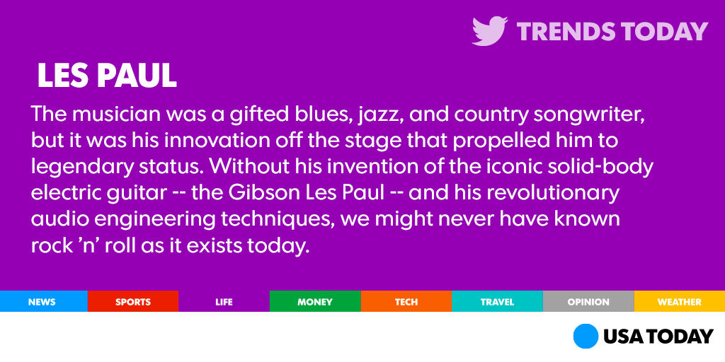 Though Les Paul isn’t alive to celebrate his 100th birthday, his legacy is still going strong http://usat.ly/1JCNrmU pic.twitter.com/LvkzQIUDAr