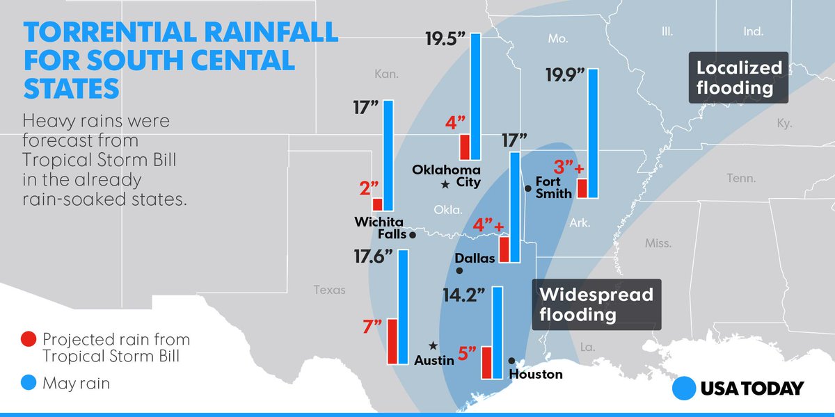 Updated graphic: Rainfall forecast from Tropical Storm Bill.pic.twitter.com/KysZ2v3gHG