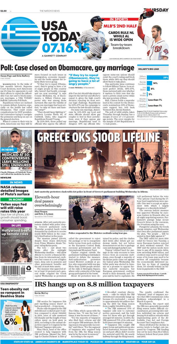 On Thursday's #frontpage: #IRS hangs up on 8.8M taxpayers. #Gaymarriage, #Obamacare fade as issues for voterspic.twitter.com/57wDhmuFRm