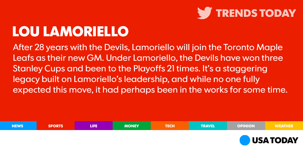 Well, this is unexpected. New Jersey Devils president Lou Lamoriello announced he was leaving. http://usat.ly/1IkISvX pic.twitter.com/JfXYetEH7m