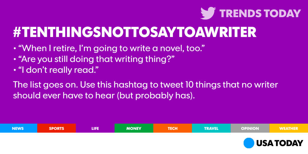 @USATODAY: “Can you make this sentence *pop* more?”#TenThingsNotToSayToAWriter pic.twitter.com/DRCcpOBPTepic.twitter.com/ZuwFHFNqkY