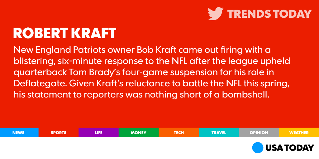Robert Kraft basically declared war against the NFL over Tom Brady's suspension: http://usat.ly/1MxEHQ0 pic.twitter.com/LCOVnnZ1Aj