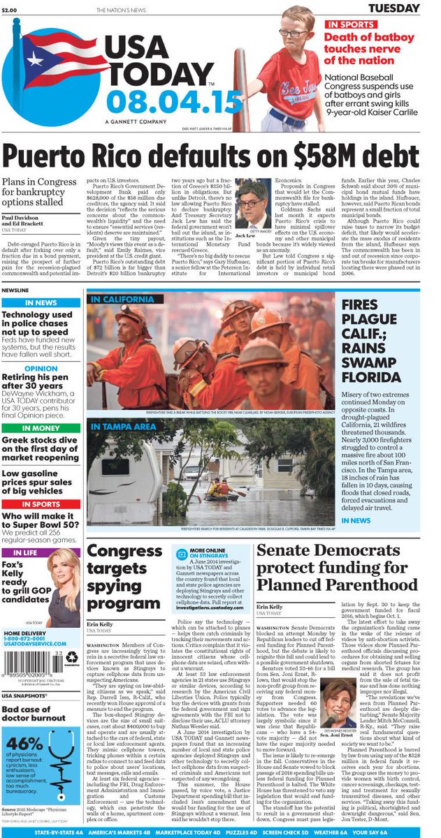 A look at Tuesday's paper: #SenateDemocrats protect #PlannedParenthood funding. Fires plague #Californiapic.twitter.com/r1WSFcwWRx