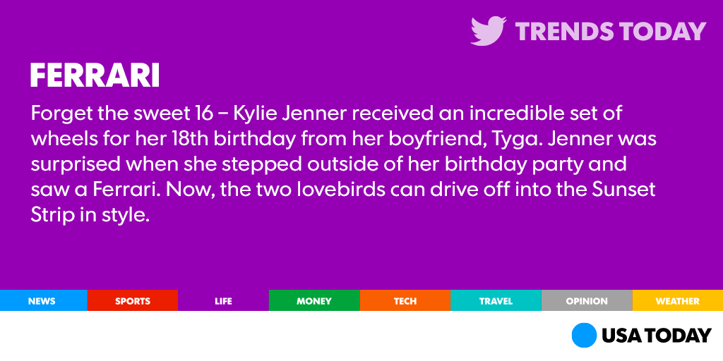 @USATODAY@Tyga@KylieJenner Is that a ferrari on 4 blocks!Thanks. Twitter will use this to make your timeline better. UndoUndo