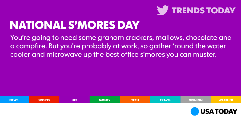 @USATODAY Here are some other fun facts about s'mores. 50% of people say S'mores are an important family tradition!pic.twitter.com/cqNXLIJt5R