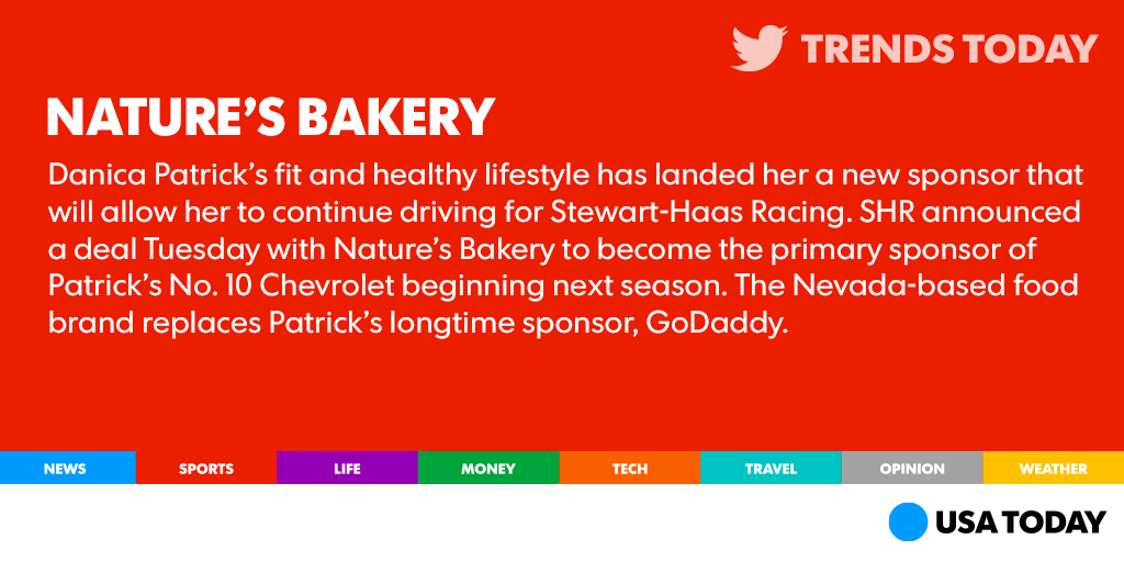 “Our brands align so perfectly, it’s amazing.” Nature's Bakery now sponsors Danica Patrick. http://usat.ly/1ND8XX8 pic.twitter.com/Kyv1lnXYqb