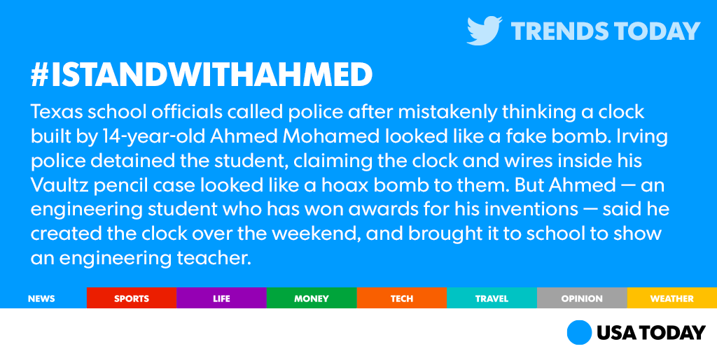 @USATODAY A white kid would be suspended for this. This kid gets invites to the White House, Google, etc. Supposed 2 be islamophobia?Thanks. Twitter will use this to make your timeline better. UndoUndo