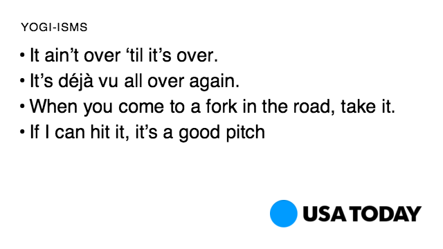 “@USATODAY: From our archives: Quips and quotes from Yogi Berra, a Yankees legend: http://usat.ly/1bMHNQ8 pic.twitter.com/6rjs22tvFw” @JeremyWGR