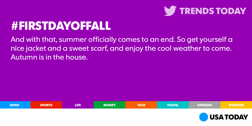 The cider. The leaves. The fresh aroma of #pumpkinspice lattes. Get in the mood: It’s the #FirstDayOfFall!pic.twitter.com/btXBDaoPrk
