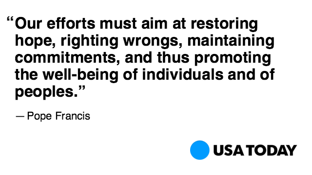 Important words from Pope Francis' speech this morning to Congress: http://usat.ly/1OV2p9j pic.twitter.com/UeFNfoXQDL
