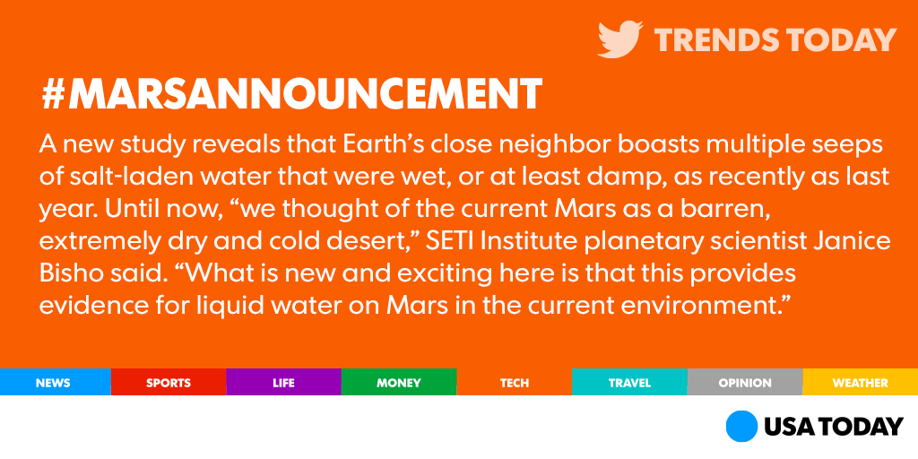 The #MarsAnnouncement is here, and the water’s fine! http://usat.ly/1JyVLhV pic.twitter.com/MJW0cp0Tgg