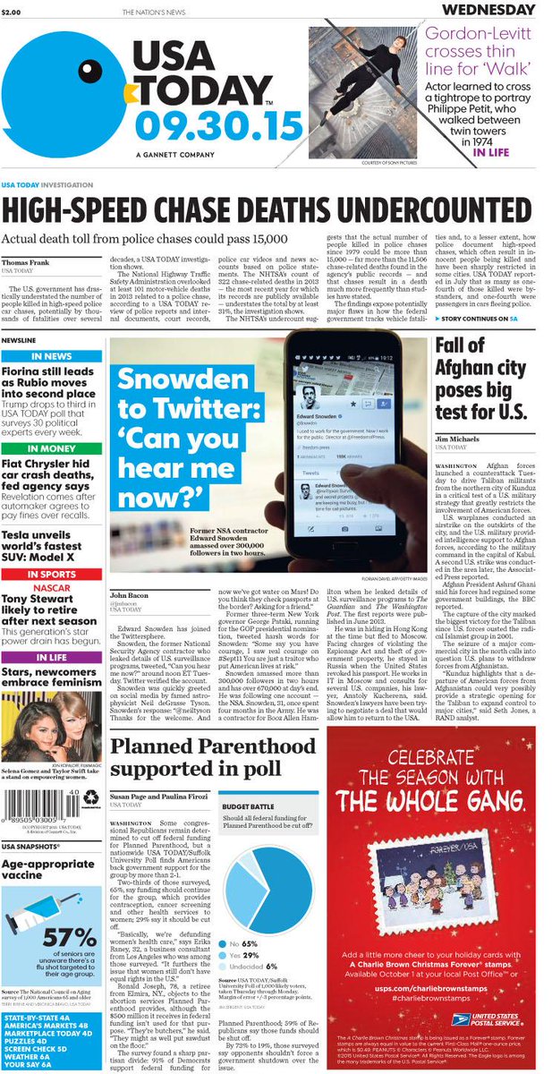 On today's #frontpage: Edward @Snowden joins #Twittersphere; High-speed chase deaths undercountedpic.twitter.com/LuVcTryZA9