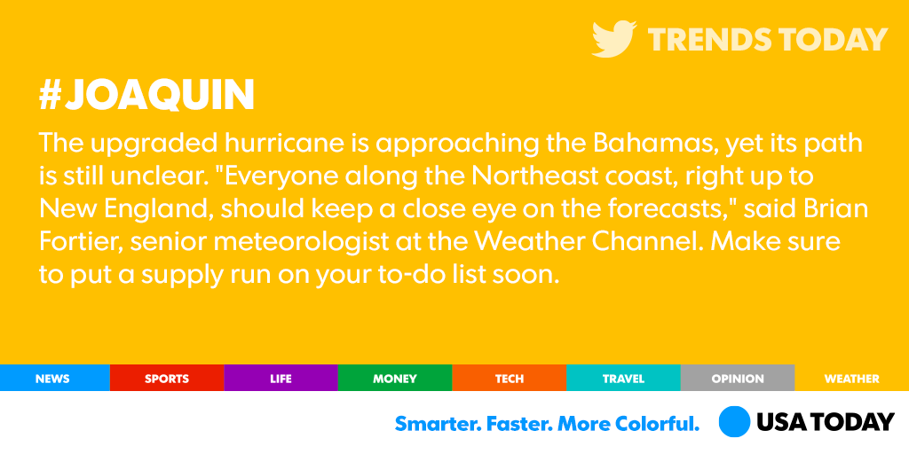 Pull out your rain boots, East Coast, Hurricane #Joaquin could be coming to a shore near you. http://usat.ly/1iLLGZu pic.twitter.com/tEhV5JT4NK