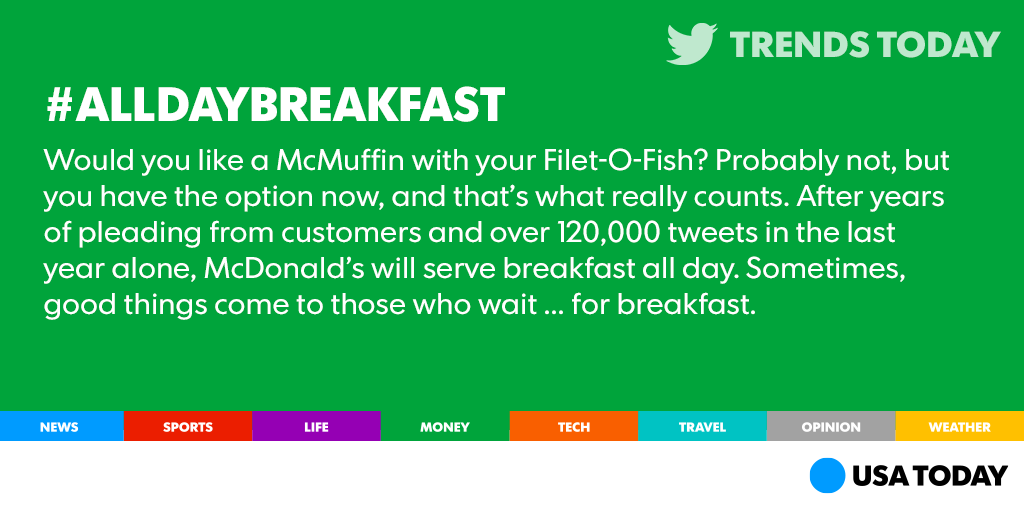 Best way to get #AllDayBreakfast? Apparently, spamming @McDonalds with tweets. http://usat.ly/1j5njGc pic.twitter.com/jSCNiLesRa