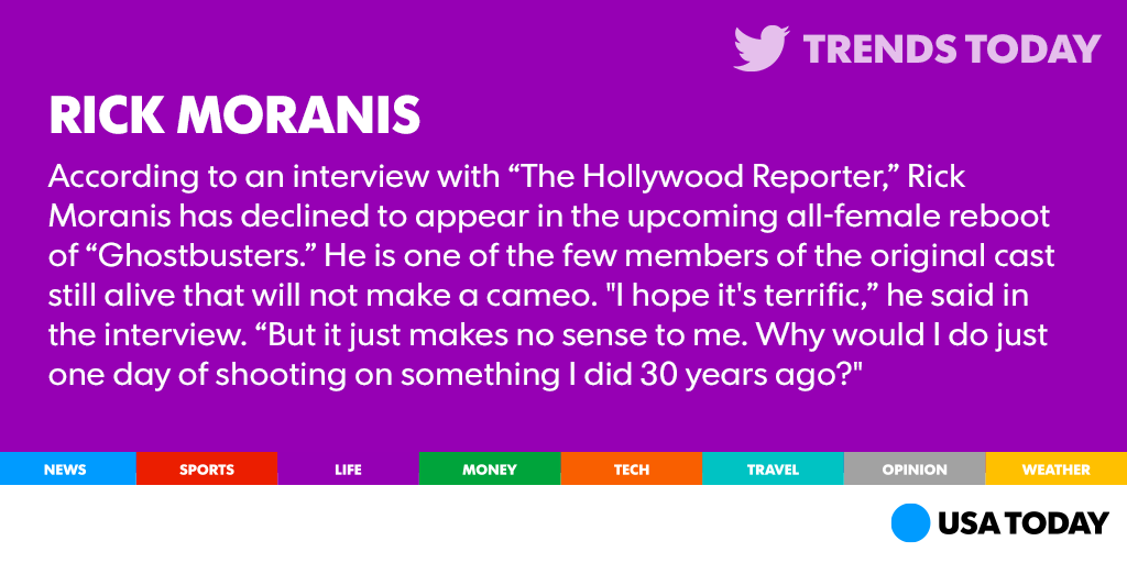 @USATODAY Will miss you#RickMoranisThanks. Twitter will use this to make your timeline better. UndoUndo
