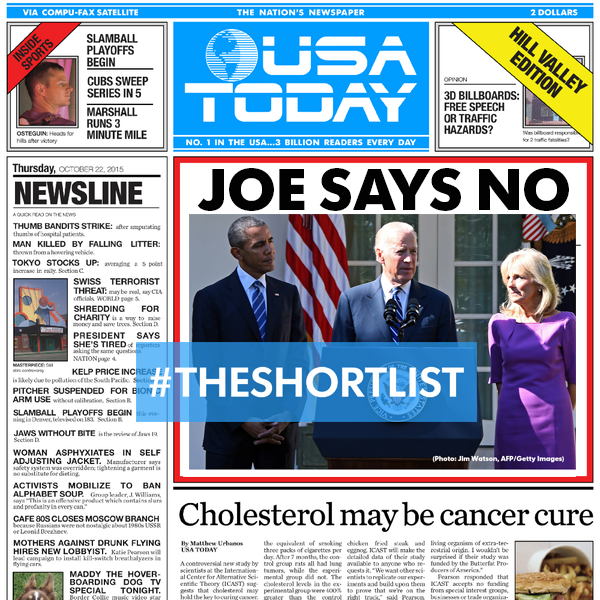 Biden's news kicked Marty McFly below the fold on #BackToTheFuture Day. Catch #theshortlist: http://usat.ly/1Lorve7 pic.twitter.com/zwVOGe2jM8