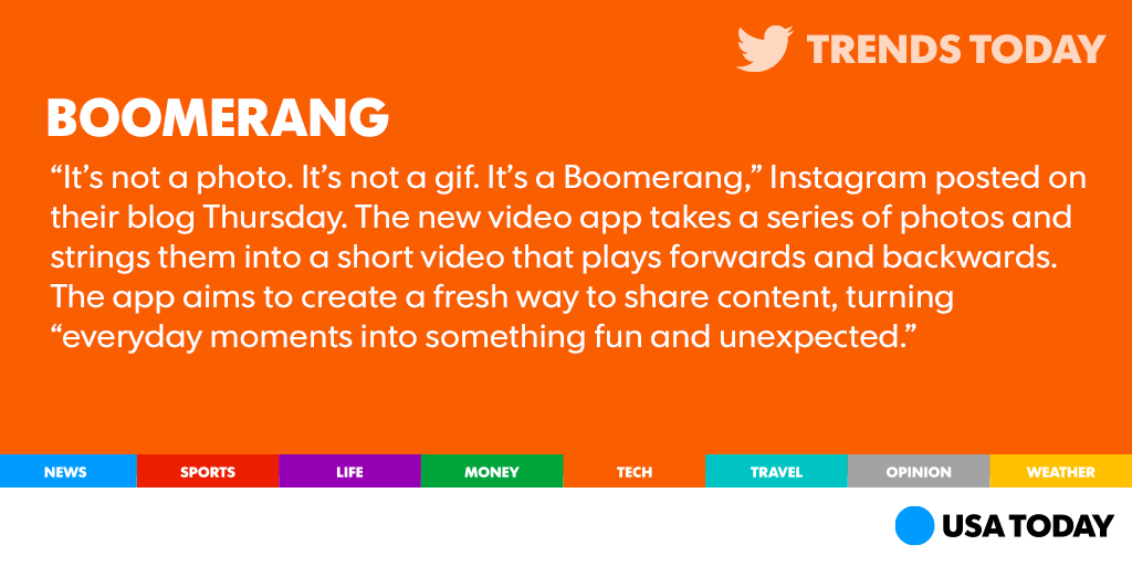 Get ready to watch videos forward *and* backward. Instagram announced Boomerang today. http://usat.ly/1PDJ4L8 pic.twitter.com/YTax1yui0B