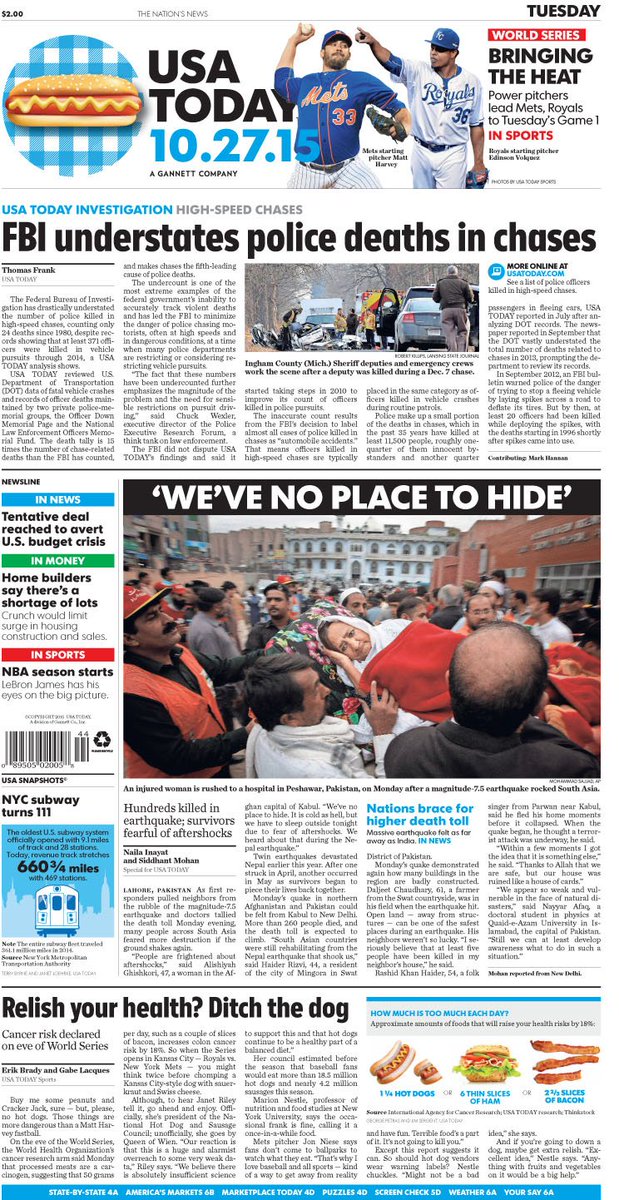On today's #frontpage: @FBI understates police deaths in #HighSpeedChases; Nations brace for rising quake tollpic.twitter.com/7EEemHk14I