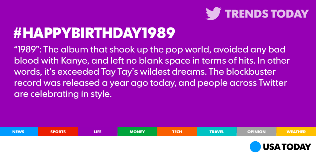 @usatoday @taylorswift13 wow has it been a year already!! Seems like yesterday the 1989 album came out!!
