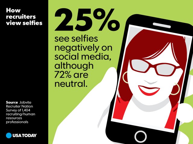 @USATODAY 25% of recruiters are assholes who think posting a selfie is harmful, and this is coming from a guy who's never taken one. Ever