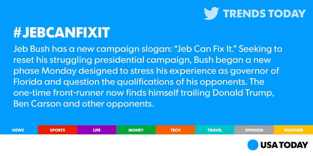 @USATODAY Hey Jeb ,,Bob The Builder can fix it ??Thanks. Twitter will use this to make your timeline better. UndoUndo