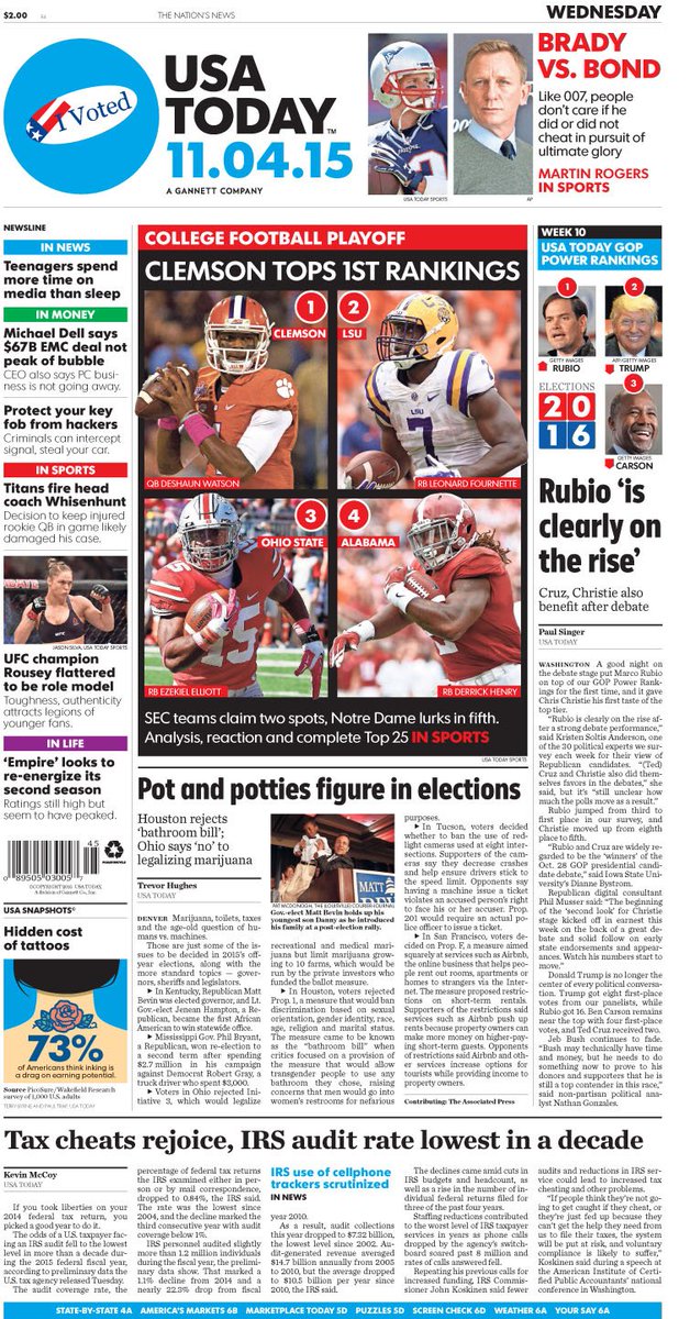 On today's #frontpage: #Rubio 'on the rise,' tops #GOPPowerRankings; @IRS audit rate lowest in a decadepic.twitter.com/p0NqHGIqVR