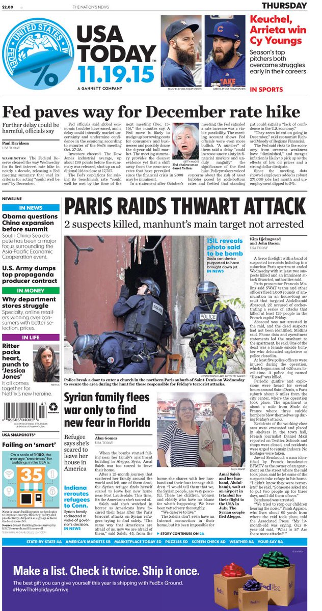 A look at Thursday's paper: #Keuchel, #Arrieta win #CyYoung awards; Family fearful in Florida after fleeing #Syriapic.twitter.com/Kq08I2nSa2