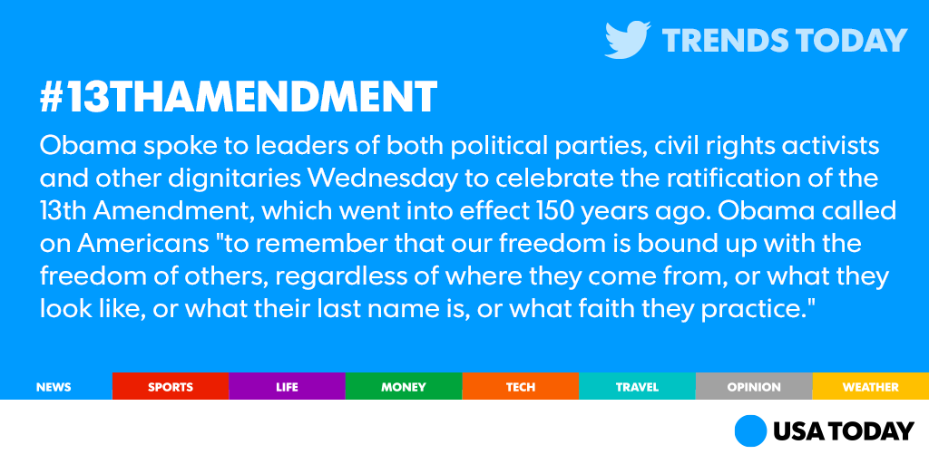 @USATODAY The 13th amendment is about making America great staying united and keeping Americans working together and living together safelyThanks. Twitter will use this to make your timeline better. UndoUndo