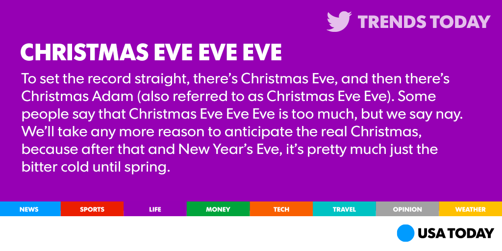 @USATODAY: It’s Christmas Eve Eve Eve, and that means one thing: only one day until Christmas Eve Eve!pic.twitter.com/lprDCKATBP