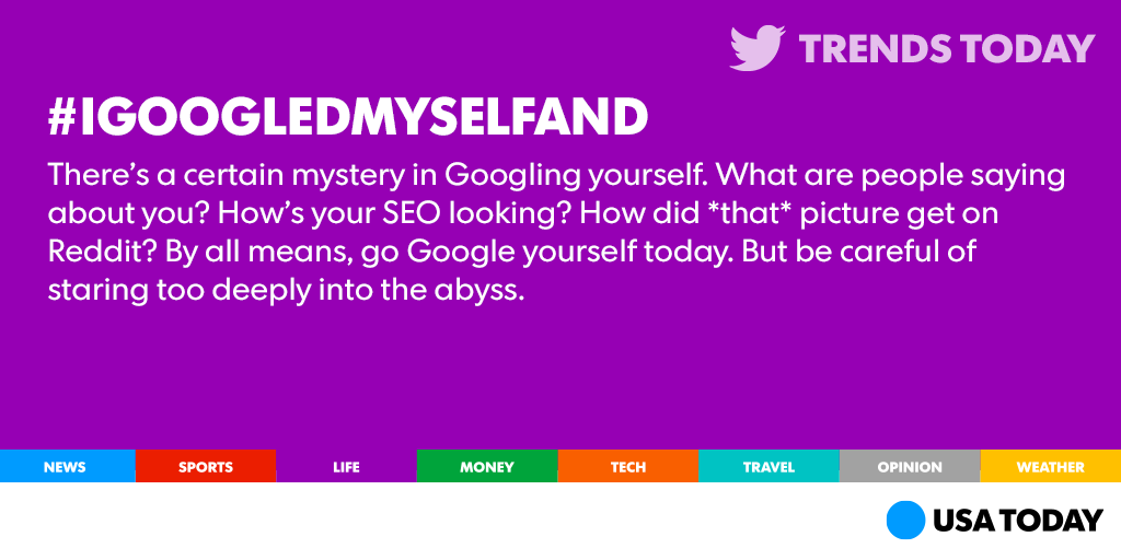 @USATODAY nevert googled myself and I aint gonna start now. don't have anything incriminating to find