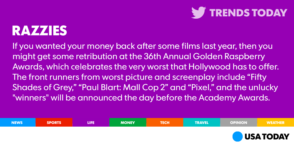 Is it the best of the worst or the worst of the worst? The Razzies announced its nominees http://usat.ly/1TVAaYu pic.twitter.com/8gipBamYhF