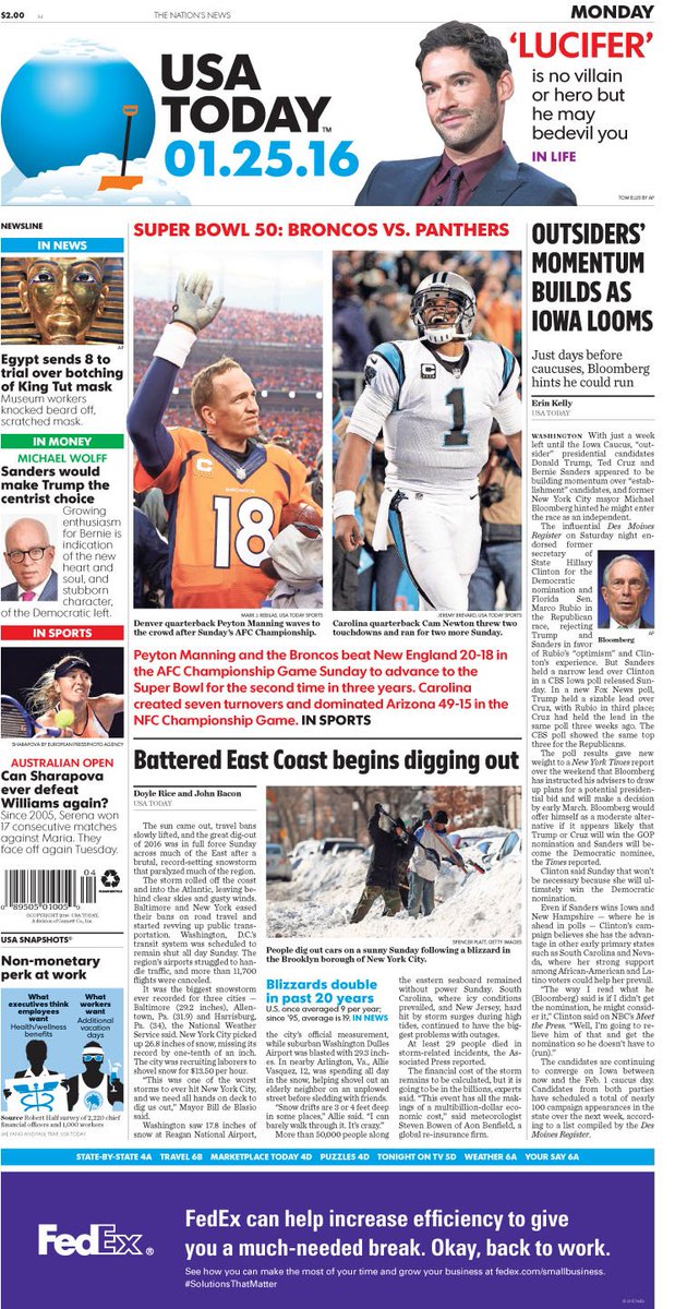 On today's #frontpage: Outsiders build momentum as #IowaCaucuses loom; East Coast starts digging out from #blizzardpic.twitter.com/lOx9LvK3SA