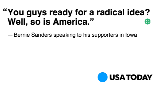 @USATODAY@Bernlennials "Radical?" We're not Radical we are Realistic.#bern2016Thanks. Twitter will use this to make your timeline better. UndoUndo