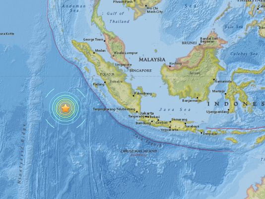 Major 7.9 magnitude earthquake has struck off the south coast of Indonesia: http://usat.ly/1oOYYaw  (Photo: @USGS)pic.twitter.com/xxGTsbXmzE