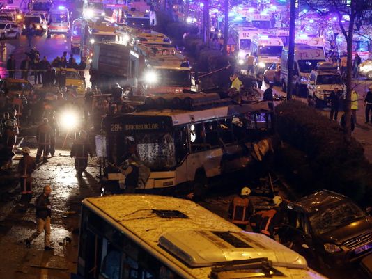 A car bomb explosion killed at least 34 people in the Turkish capital of Ankara http://usat.ly/1po7m1C  Photo: APpic.twitter.com/O6mPXx1Yk3