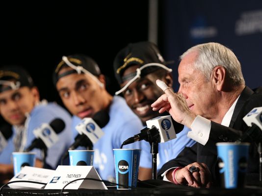 Ouch! UNC's Roy Williams is not new to net-cutting, but he made a rookie mistake: http://usat.ly/1RvSjtJ pic.twitter.com/KoIx47bRFb