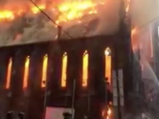 Massive fire engulfs 160-year-old church in New York City: http://usat.ly/1TEzXtf  (Photo: Twitter)pic.twitter.com/87CyWlaU2i