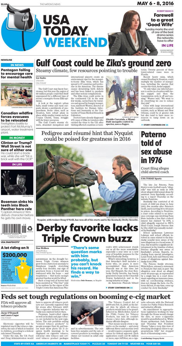 On today's #frontpage: #Derby favorite lacks #TripleCrown buzz; #GulfCoast could be ground zero for #ZikaViruspic.twitter.com/CE51DZHIWQ