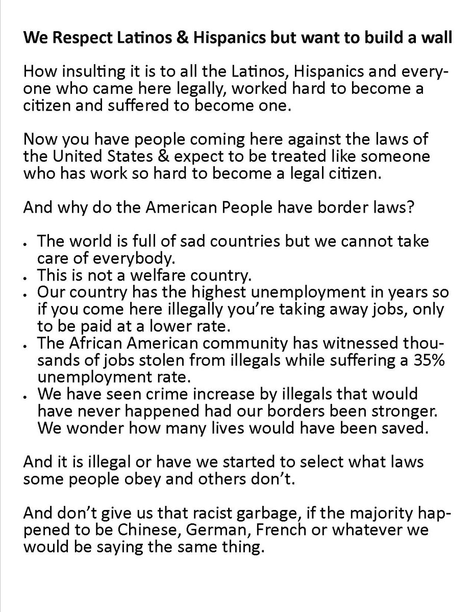 @USATODAY@LindseyGrahamSC We Respect Latinos & Hispanics but want to build a wallpic.twitter.com/pC7fnMUzKB