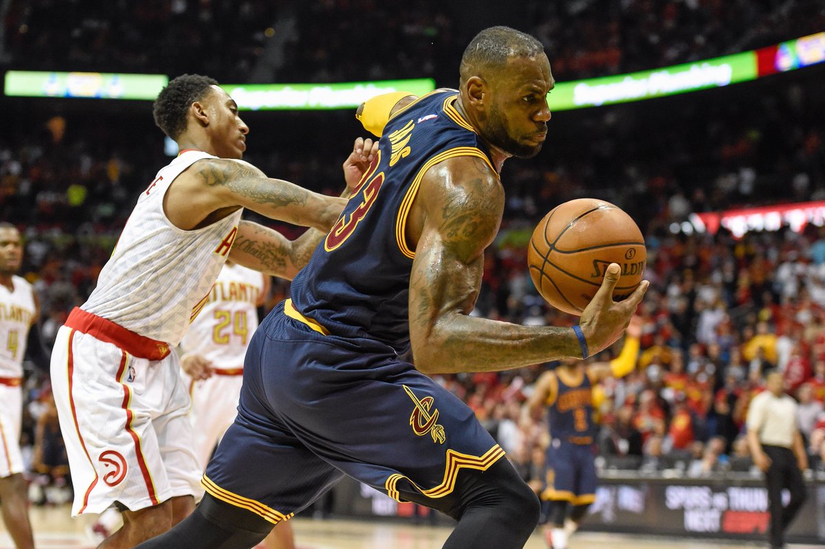 LeBron James went flying into the crowd after being shoved by Jeff Teague in final minute http://usat.ly/1WPsE4G  pic.twitter.com/RWR1b2mL59